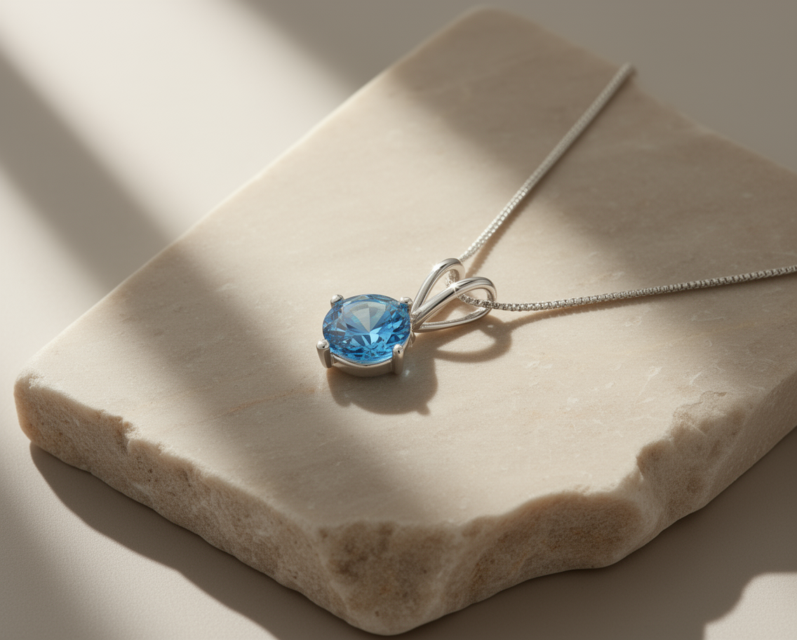 Designed to remain stylish for years to come, this pendant is perfect for both everyday wear and special occasions. Whether chosen as a thoughtful gift or as a beautiful addition to your own jewelry collection, the Azure Spark Swiss Blue Topaz Pendant offers timeless elegance and exceptional brilliance.