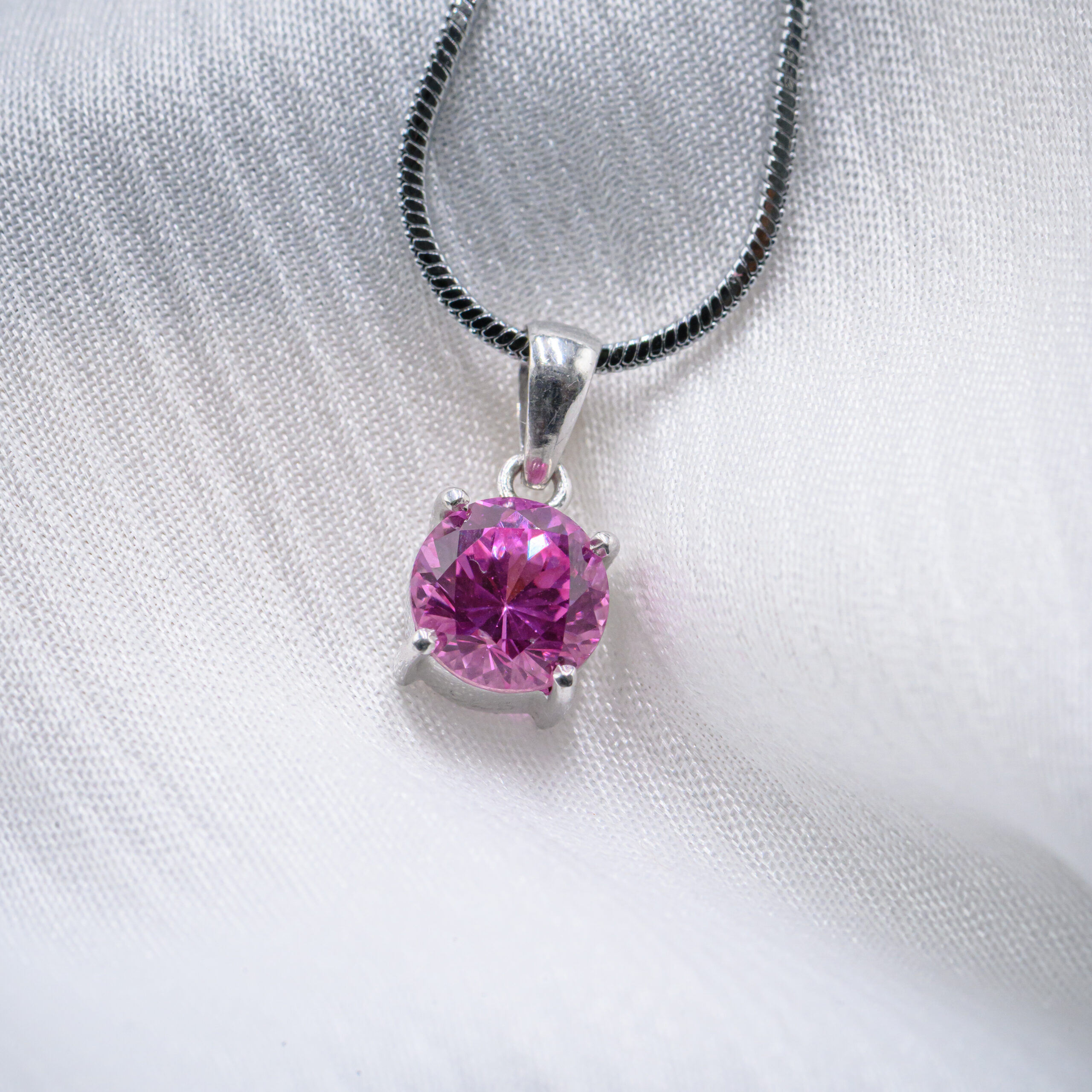 The pendant is carefully handcrafted in solid 925 sterling silver, ensuring strength, durability, and a refined finish. A rhodium plating gives the silver the bright appearance of white gold while protecting it from tarnish and everyday wear. This high-polish finish enhances the gemstone’s brilliance and ensures long-lasting shine.