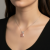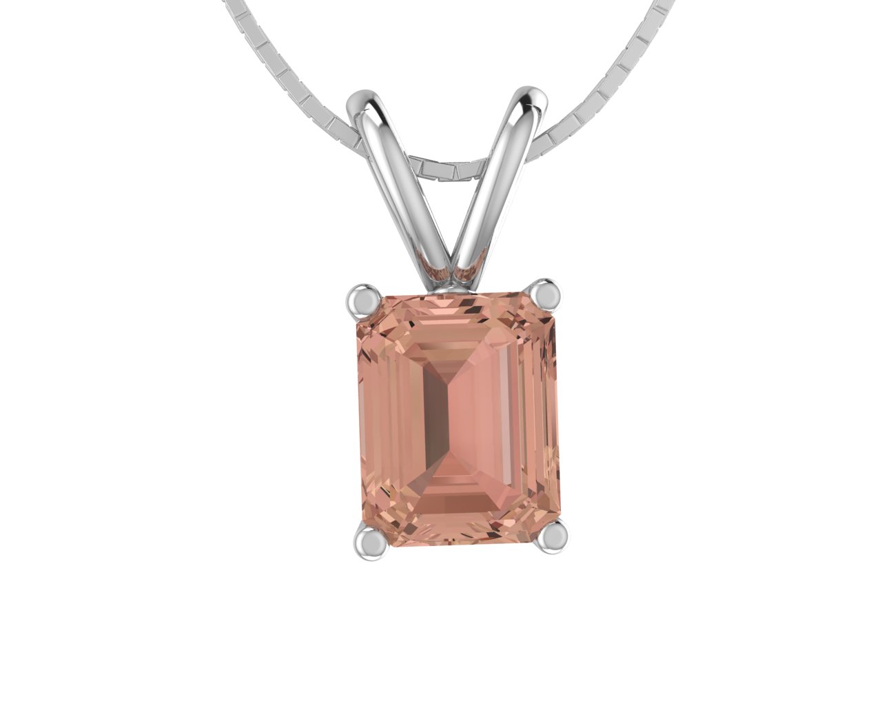 This elegant pendant features a 10 × 8 mm emerald-cut lab-created champagne morganite (approx. 4.22 ct) set in rhodium-plated 925 sterling silver. Designed with a refined double-hook setting, this handcrafted pendant highlights the gemstone’s warm champagne-pink glow and sophisticated step-cut brilliance, making it perfect for both everyday elegance and special occasions.