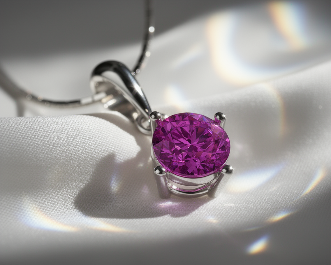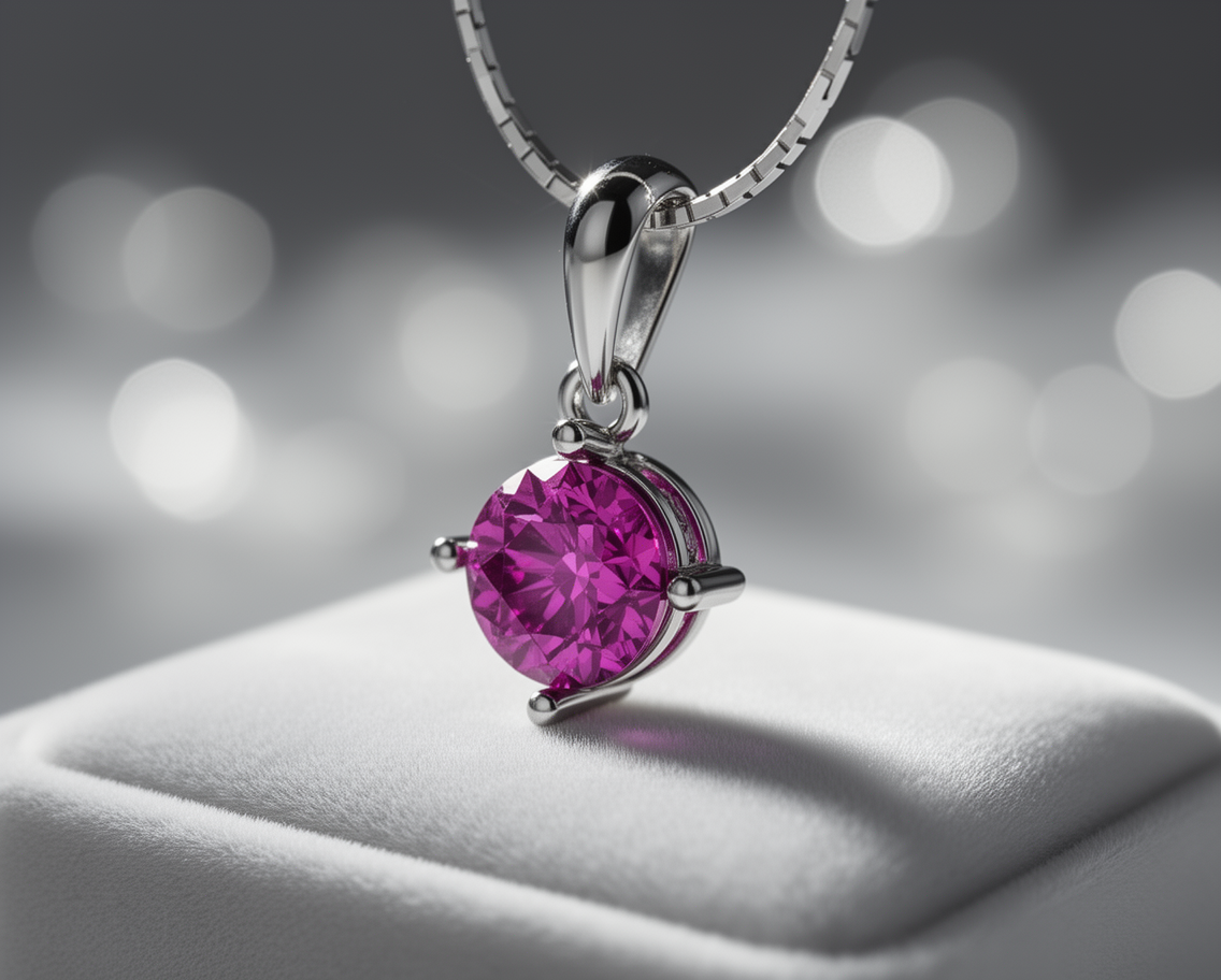 The pendant is carefully handcrafted in solid 925 sterling silver, ensuring durability and superior craftsmanship. A rhodium plating gives the metal the bright appearance of white gold while protecting it from tarnish and everyday wear. This polished finish enhances the gemstone’s brilliance and ensures long-lasting shine.