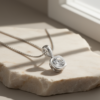 Crafted from solid 925 sterling silver, the pendant is finished with rhodium plating, providing a bright white-gold appearance while protecting the metal from tarnish and wear. The polished silver setting enhances the brilliance of the stone and ensures long-lasting shine.