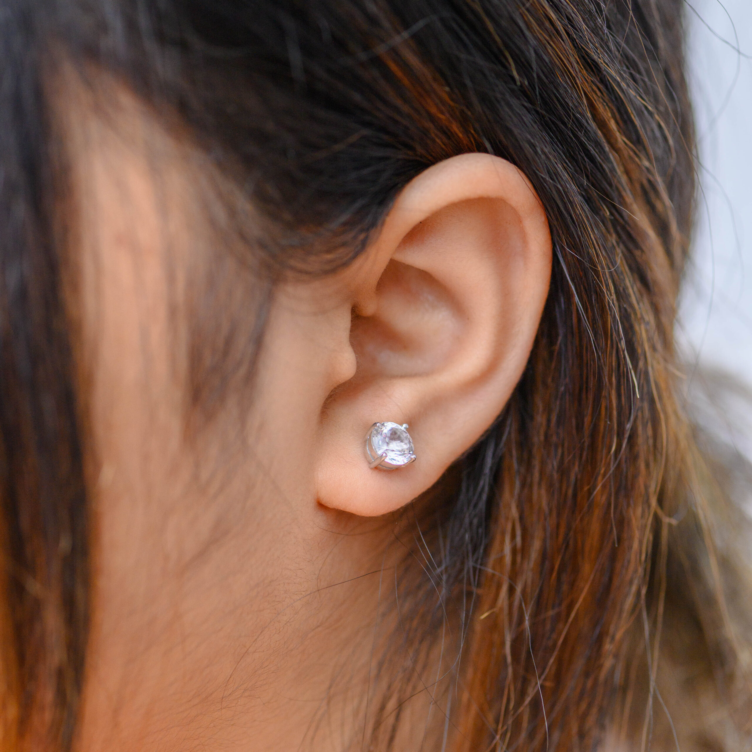Brilliant and timeless, these stud earrings feature round brilliant-cut natural White Topaz gemstones (7mm) set in rhodium-plated 925 sterling silver. With exceptional clarity and diamond-like sparkle, these elegant studs offer classic beauty and everyday sophistication.