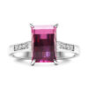 At its center sits a vivid 7x7mm princess-cut lab-created emerald weighing approximately 3.46 carats. The clean, sharp symmetry of the princess cut enhances the emerald’s rich green brilliance while delivering crisp, contemporary sparkle.