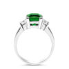 Flanked by shimmering cubic zirconia accents, the setting adds dimension and light contrast, amplifying the intensity of the emerald’s lush green hue. The result is a ring that feels powerful, polished, and unmistakably elegant.