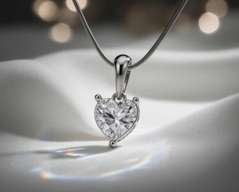 At the center of the pendant sits an 8 × 8 mm heart-cut natural white topaz, weighing approximately 1.66 carats. The heart cut is known for its romantic silhouette and brilliant faceting, allowing the gemstone to reflect light beautifully while creating a soft, elegant sparkle. This shape symbolizes love and affection, making the pendant both meaningful and stylish.