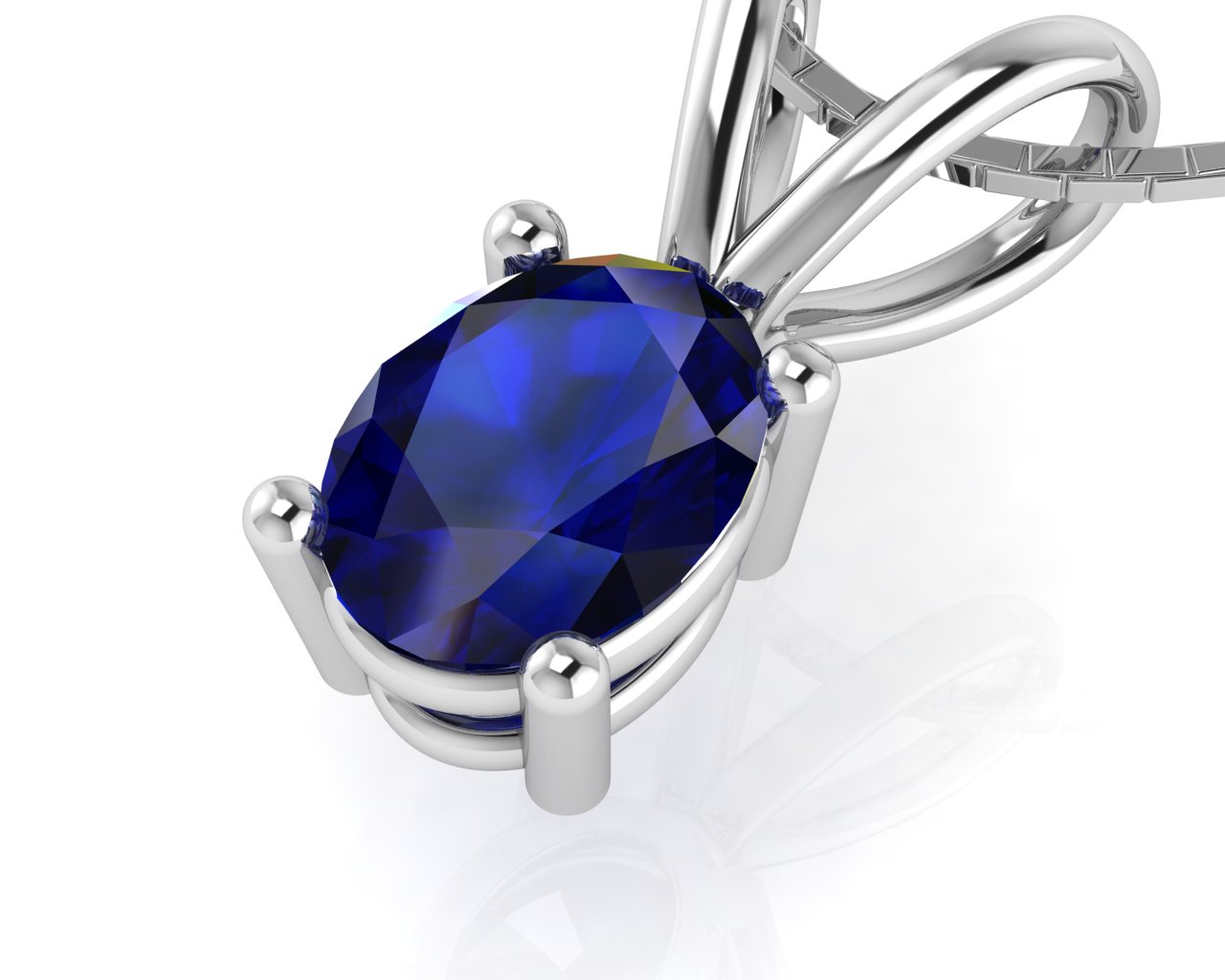 Royal Blue Sapphire Oval Pendant in Rhodium-Plated Sterling Silver
