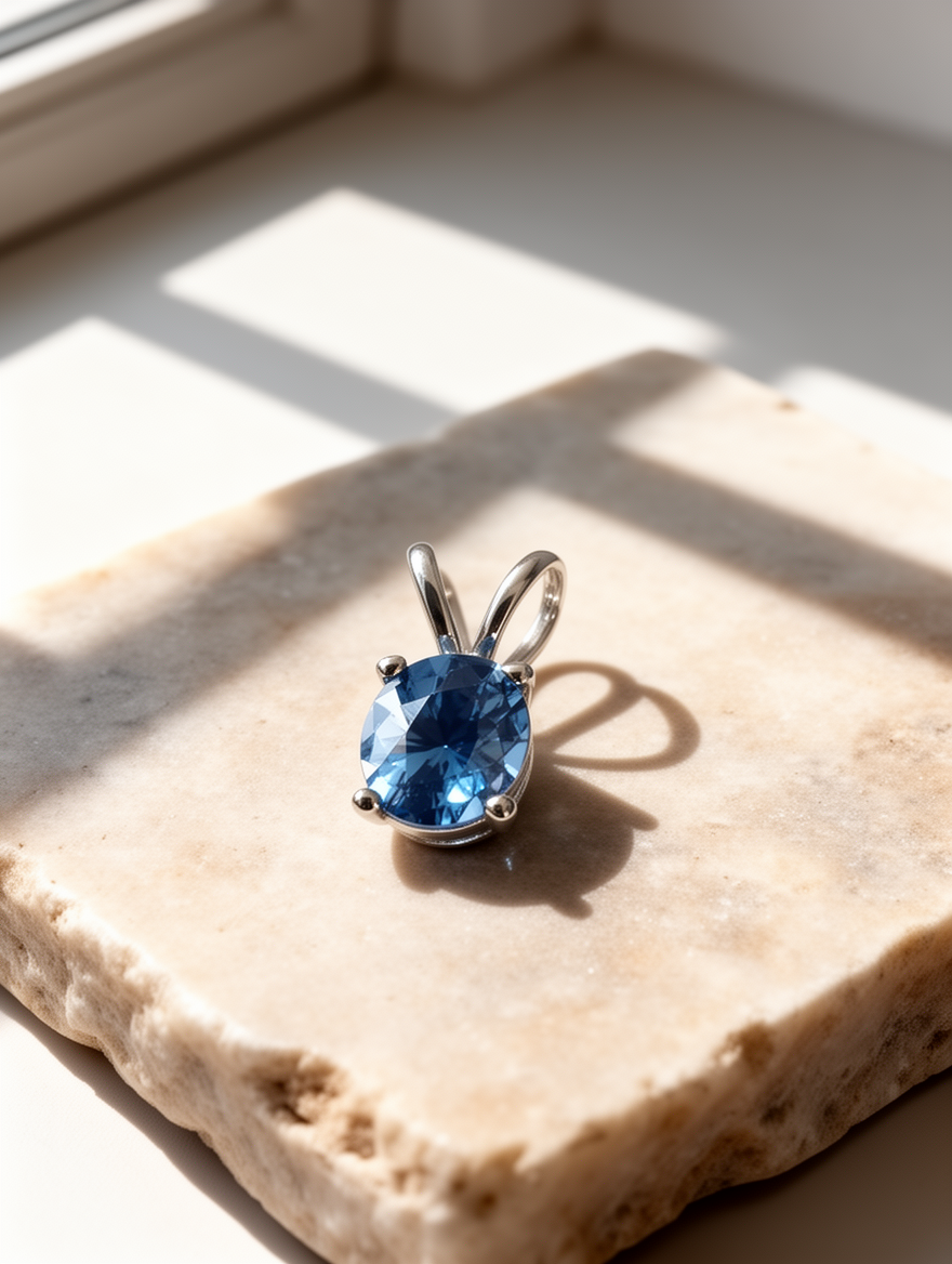 Crafted from solid 925 sterling silver, the pendant is finished with rhodium plating, giving it the appearance of white gold while protecting the metal from tarnish and everyday wear. The polished silver setting beautifully complements the gemstone’s vibrant blue color, creating a sophisticated and luminous look.