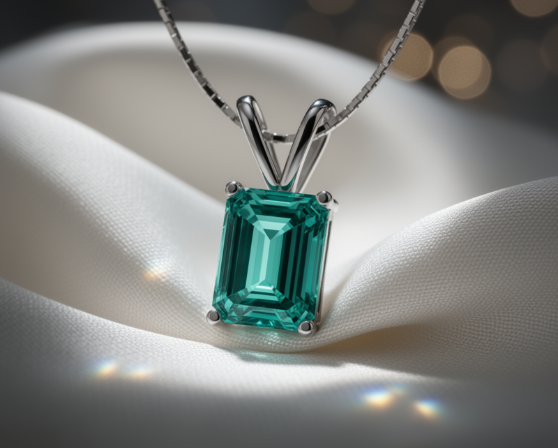 The gemstone is mounted in solid 925 sterling silver and finished with a rhodium plating, giving the pendant a bright white-gold appearance while protecting the metal from tarnish. This finish enhances the brilliance of the stone while ensuring long-lasting durability.