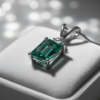 At the center of this pendant lies a stunning emerald-cut Paraiba tourmaline measuring 7mm × 9mm, weighing approximately 4.17 carats. The emerald cut, known for its clean step facets and elegant geometry, enhances the gemstone’s clarity while allowing light to reflect beautifully through the stone. This cut gives the gemstone a refined brilliance and sophisticated presence.